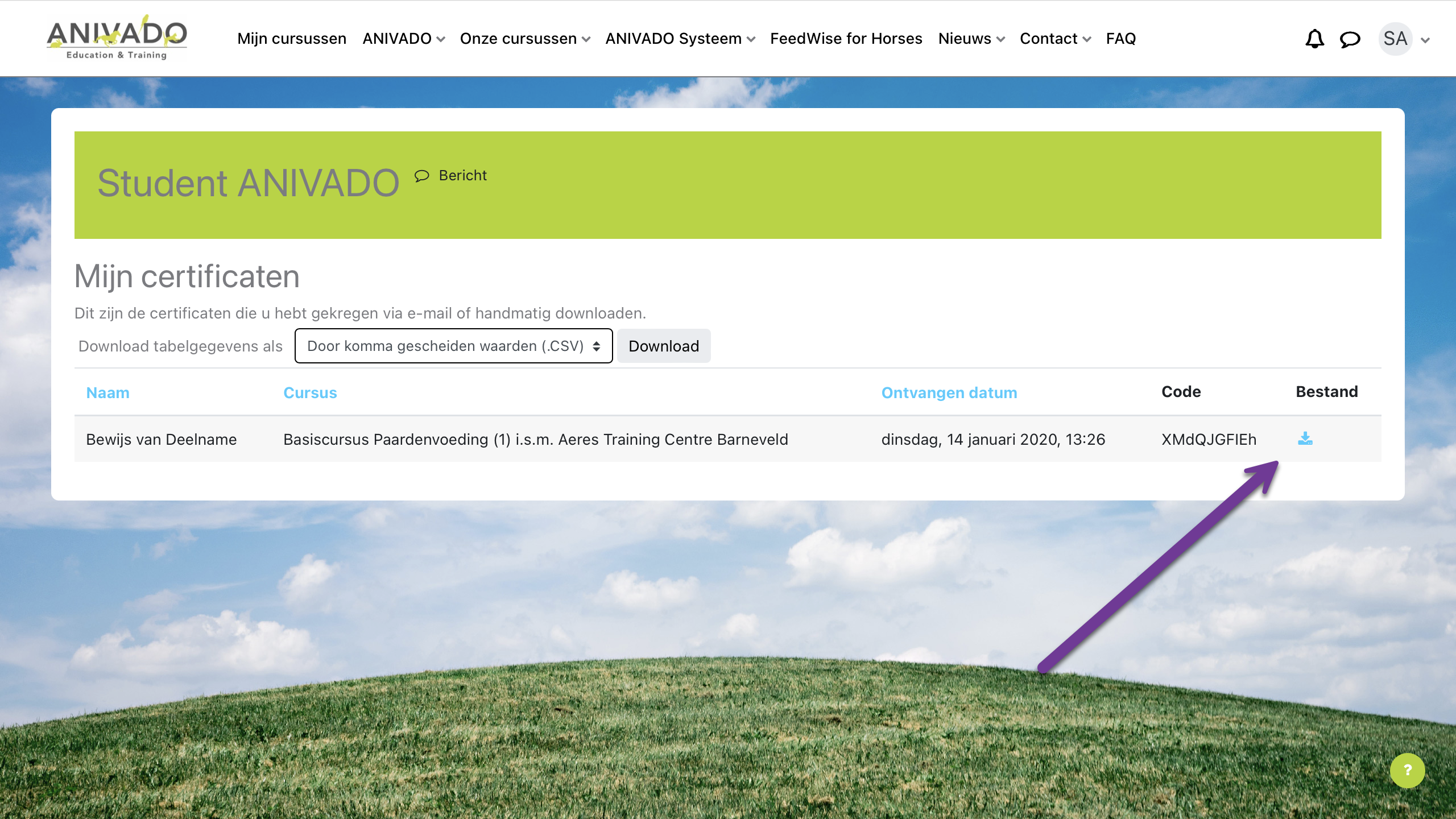 The certificate will be downloaded and can be found in your download folder. Note: De date on the certificate will be the date you download the certificate. | ||||